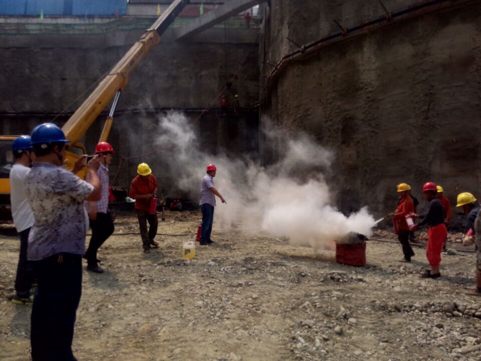 本次演練由項目經理向明智任總指揮,分管安全的宋強任現(xiàn)場指導。演練過程中首先在工地內發(fā)出火災警報,項目部及各施工班組迅速組織人員及滅火用具,在保證自身安全的情況下第一時間達到了火災現(xiàn)場,正確使用了滅火器具,在最短的時間內消除了現(xiàn)場的火災隱患。