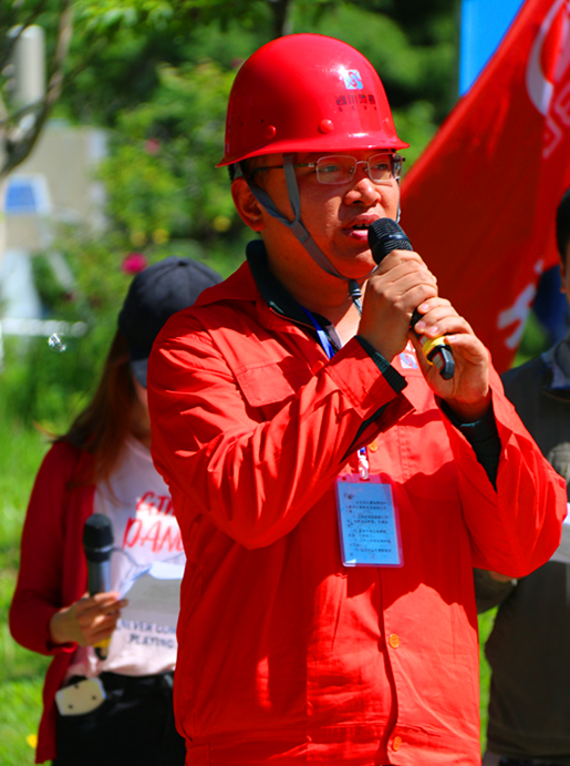 項(xiàng)目部現(xiàn)場(chǎng)總協(xié)調(diào)人陳新代表參加演練的施工單位發(fā)言